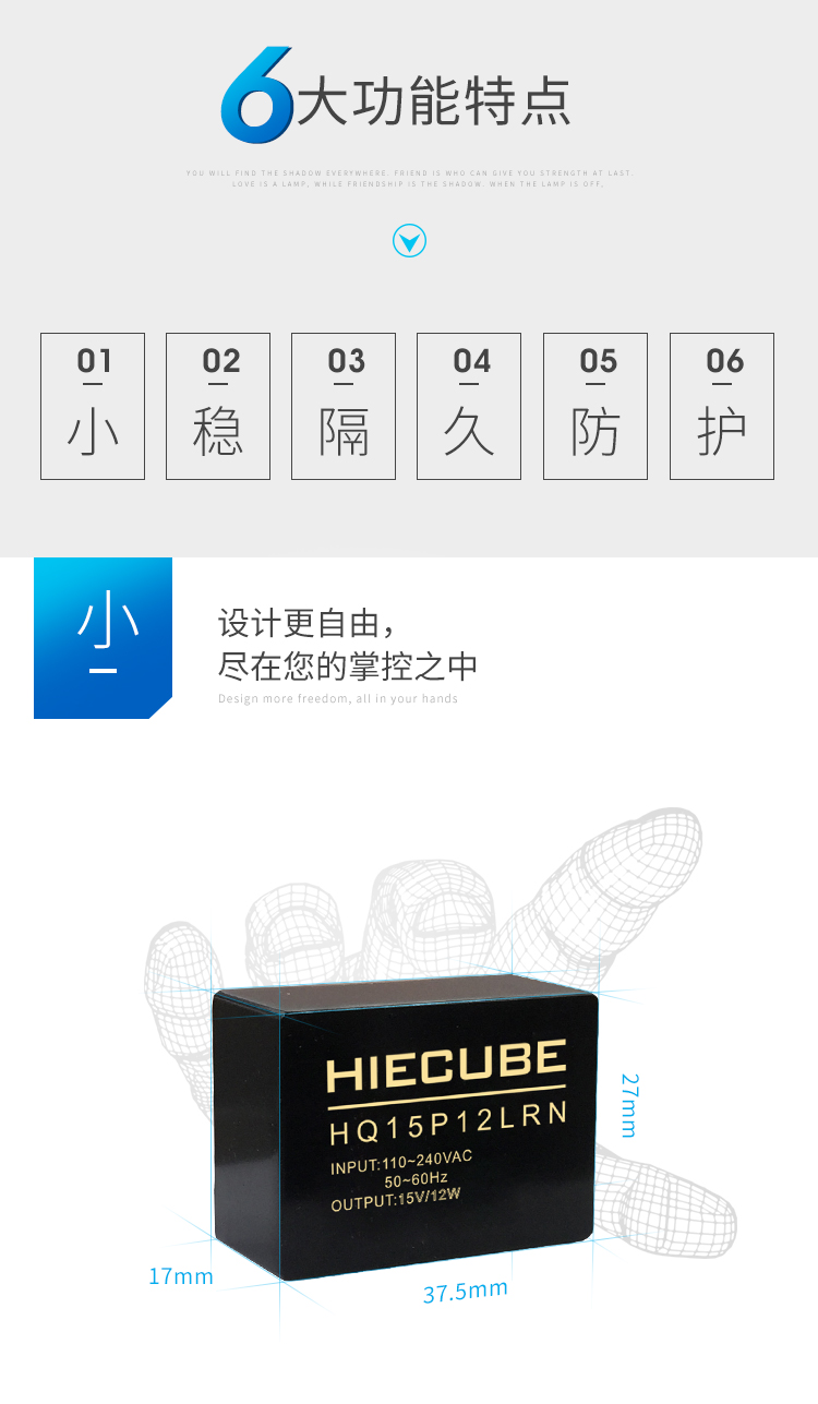 HQ系列——是HIECUBE為客戶提供的小型封裝形式的高效綠色ac-dc模塊電源,該系列電源具有交直流兩用、輸入電壓范圍寬、 高可靠性、低功耗、安全隔離等優(yōu)點。電源的效率高達86%和低于0.1W的超低空載功耗。可以提供基本的防塵和防水功能。HQ系列電源廣泛適用于工控和電力儀器儀表、智能家居等對體積要求苛刻,并對 EMC 要求不高的場合。如果需要應用于電磁兼容惡劣的環(huán)境下必須外加 EMC 外圍電路。
