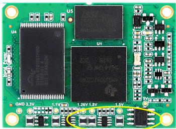 以M3352工業(yè)級核心板(Cortex-A8內核)為例進行測試(該核心板通過了電磁兼容工業(yè)4級試驗,包括靜電、浪涌、脈沖群、傳導騷擾等),在上電狀態(tài)下,工程師手指觸摸圖4所示黃色圈注位置,可誘發(fā)系統(tǒng)重啟現象。這是什么原因呢?